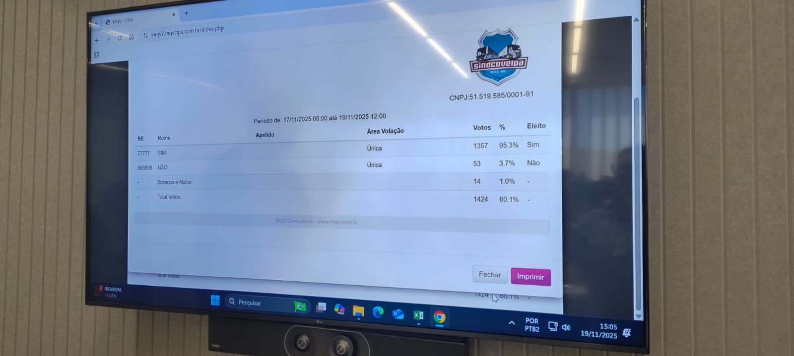 Entre os dias 17 e 19 de novembro de 2025, realizamos a votação para aprovação da proposta do Acordo Coletivo de Trabalho, que foi realizada pela plataforma online MQV.